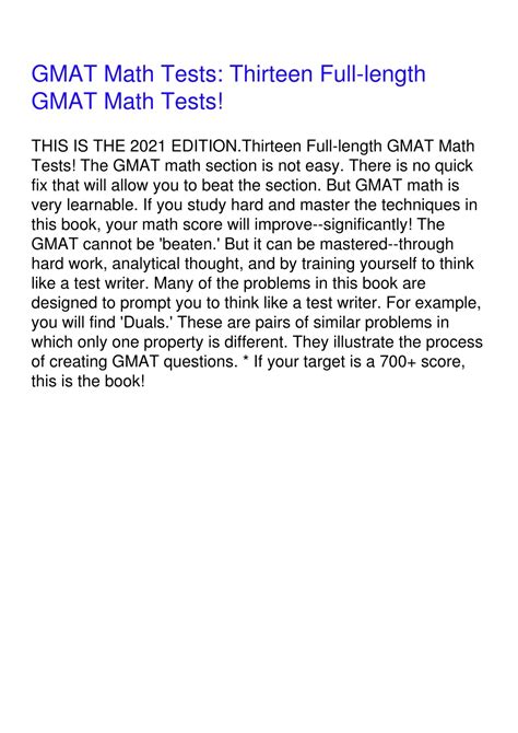 Free Download Gmat Math Tests Thirteen Full-Length Gmat Math Tests PDF Book Free Download PDF